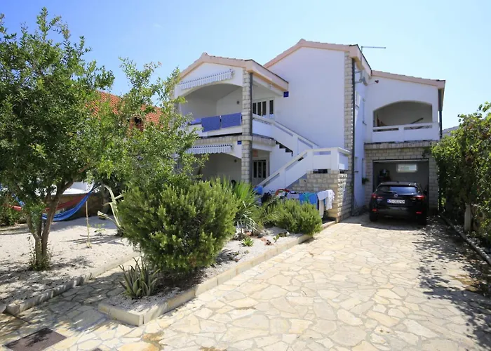 Om van uw vakantie in Vir te genieten, verblijf in Easy Summer Vir appartementen, gelegen op maar 1 km verwijderd van de Plaza Miljkovica en binnen 15 minuten loopafstand van het Soldatica Strand. Dit appartement heeft een terras met uitzicht op de tuin
